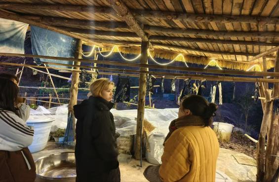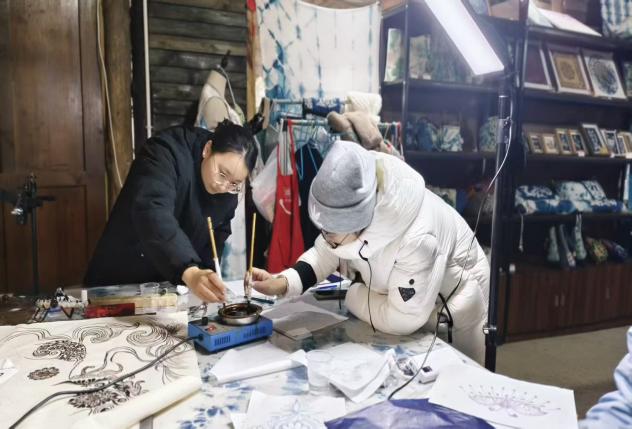 “枫香油要加热到不冒烟才刚好,画的时候手腕要稳,每一笔都藏着布依族对自然的敬畏。”在贵阳乌当区新堡布依族乡王岗村的骆越魂非遗工艺品工作室里,市级枫香染传承人韦丽老师的叮嘱,伴着淡淡的枫香与靛蓝气息,刻进了我们实践小队的青春记忆。这个冬天,我们这群来自不同专业的大学生,告别校园的书本理论,在这座藏于青山绿水间的工作室里,开启了一场与千年非遗的深度对话。